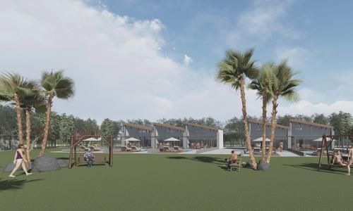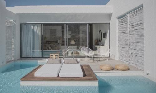 Παραθεριστικές κατοικίες τύπου loft με κολυμβητική πισίνα και διαμορφωμένο περιβάλλοντα χώρο σε οικόπεδο εκτός σχεδίου.